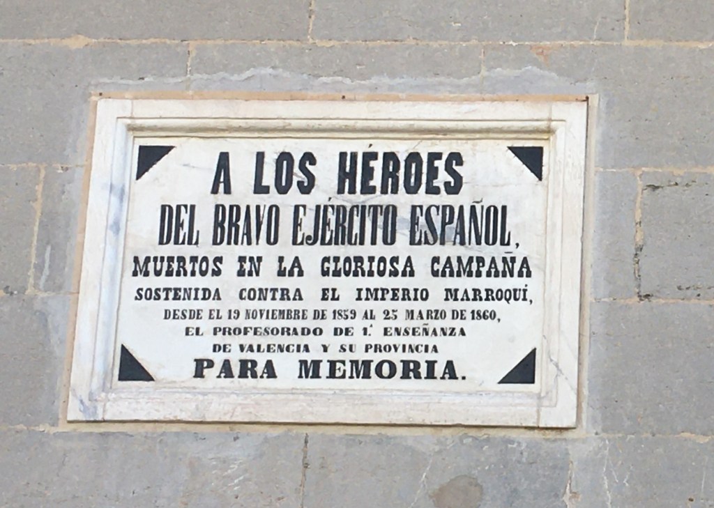 Traditionally, being Spanish meant empire, monarchy and Catholicism. The empire had been created by the monarchy to bring Christian civilisation to the world. But Spain lost most of her Latin American colonies in the early 19th century. Cuba, her one remaining jewel, was taken by the United States in 1898 at the peak of European imperialism. Attempts to forge an empire in Africa only reinforced a perception of weakness and decline. The War of 1859-60 with the Sultanate of Morocco, in which Spain occupied Tetuan for several months, sparked a patriotic response; the memorial plaque to the campaign’s ‘heroic’ soldiers in Valencia’s Plaza de Tetuán – referred to by Maria – is one of the consequences of this outburst of nationalism. However, the British would not allow extensive Spanish expansion in the region, and the creation of a Spanish enclave in northern Morocco in the early twentieth century was the product of broader colonial agreements between the traditional rivals of Britain and France.