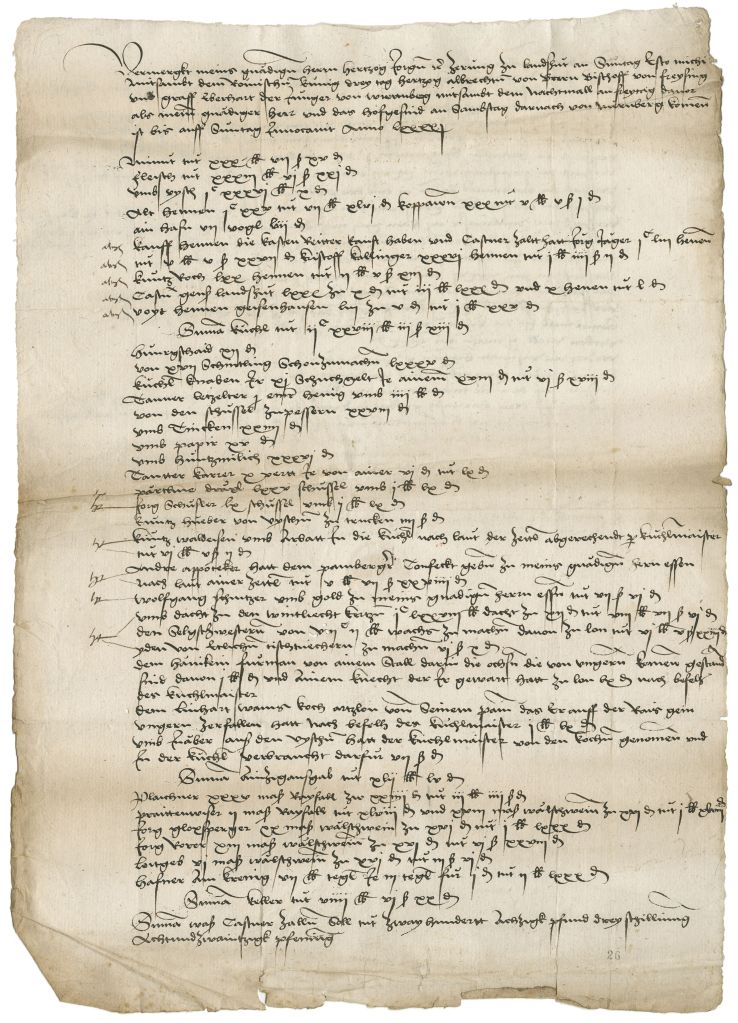 The dining habits of Dukes Ludwig and Georg were luxurious and extremely costly. Comparisons of the total expenditure of 18,451 pounds pfennigs for meals in the accounting year 1491/92 under Duke Georg with other German courts show that the Landshut court clearly surpassed other high-ranking German courts in terms of of table luxury: 3.5 times the annual sum spent to maintain the Munich court in 1464, namely 2,800 pounds pfennigs, was spent in Landshut in 1491/92. At the court of Elector Albrecht Achilles of Brandenburg, 9,318 pounds pfennigs was the guideline spend for the kitchen, cellar, chamber and stables: half as much as in Landshut!