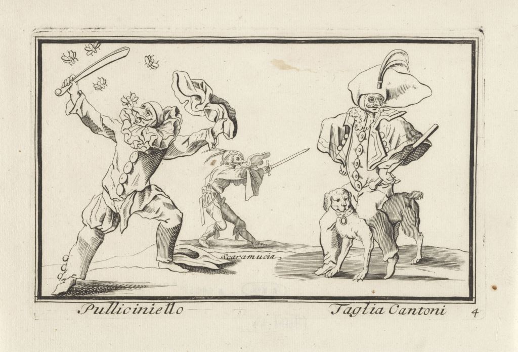 Venice had a thriving public theatre scene as early as the sixteenth century. In the earliest theatres, the performances were comedies, in the commedia dell’arte style. These performances were improvised comedy sketch shows with stock characters. Fairly standardized costumes (and masks for most characters) made them recognisable to audiences. There were four different types of characters (each with a number of individual personalities). There were zanni (clowns), who played servants; these include the famous characters of Arlecchino (Harlequin) and Pulcinella. There were vecchi, or old men; these were wealthy and often comically dull, such as the blowhard doctor character known simply as il Dottore. There were also capitani (captains), who were authoritative but also often braggarts or imperious older women. Finally, there were the innamorati, the lovers, who were young, beautiful elites, and who were the only characters who never wore masks. This form of theatre could be performed in the streets or inside public theatre buildings, and shows were typically performed by traveling theatre groups. Obviously street performances were the most accessible, but theatres were open to all paying customers, and cheap seats high in the balcony were available. Gondoliers got in for free!