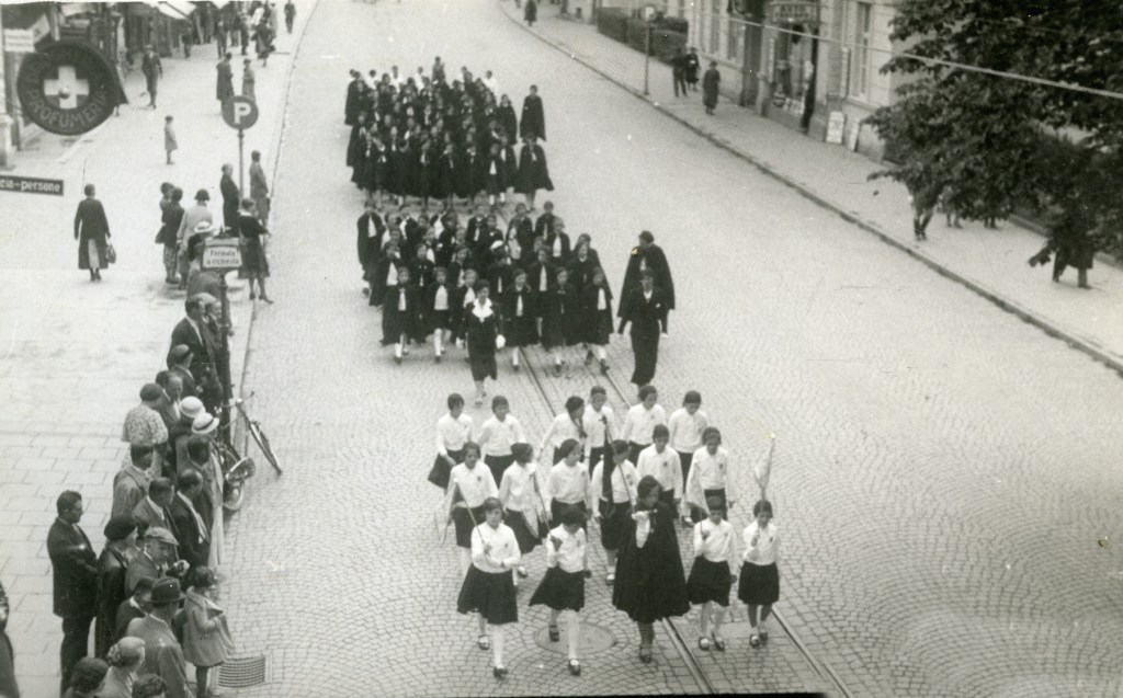 Inside and outside of schools, fascism organised girls and boys in paramilitary forms, promoting the cult of the leader and the care of physical strength, arranging collective rallies, treating education as a tool of propaganda. In the classrooms, the image of the Duce stood out alongside the king and the crucifix while the history of the regime is narrated in the textbooks. The Roman salute was introduced as were the celebrations of the March on Rome, the Great War and, in the second half of the 1930s, the Fascist Empire. The self was overwhelmed by a public ideal, by an increasingly close relationship between school, society and politics that extended well beyond teaching activities, generating, even in Trentino, open conflicts with Catholic institutions and practices.