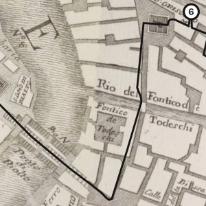 In the trail, you accompany Capitano Biancafior as he investigates the case, following clues from the church of the Carmelites to the Do Spade tavern near the Rialto, and onwards to Caffè Florian in Piazza San Marco and the prison next to the Doge’s palace.